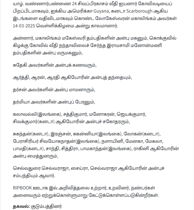 துயர் பகிர்வு: லோகேஷ்வரன்